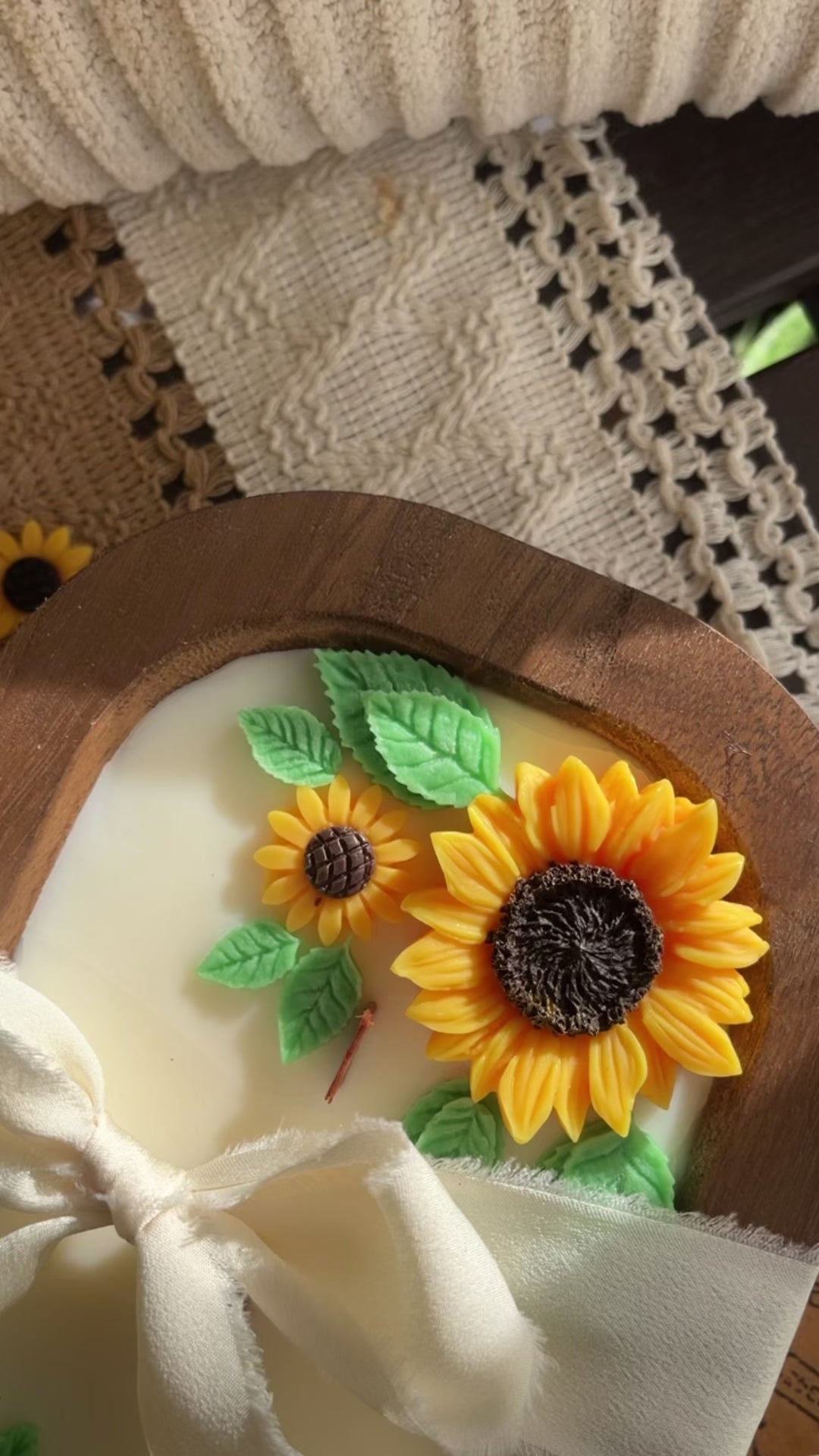 Wooden Sunflower Candle – Handcrafted Floral Soy Wax Candle – Rustic Home Decor Gift