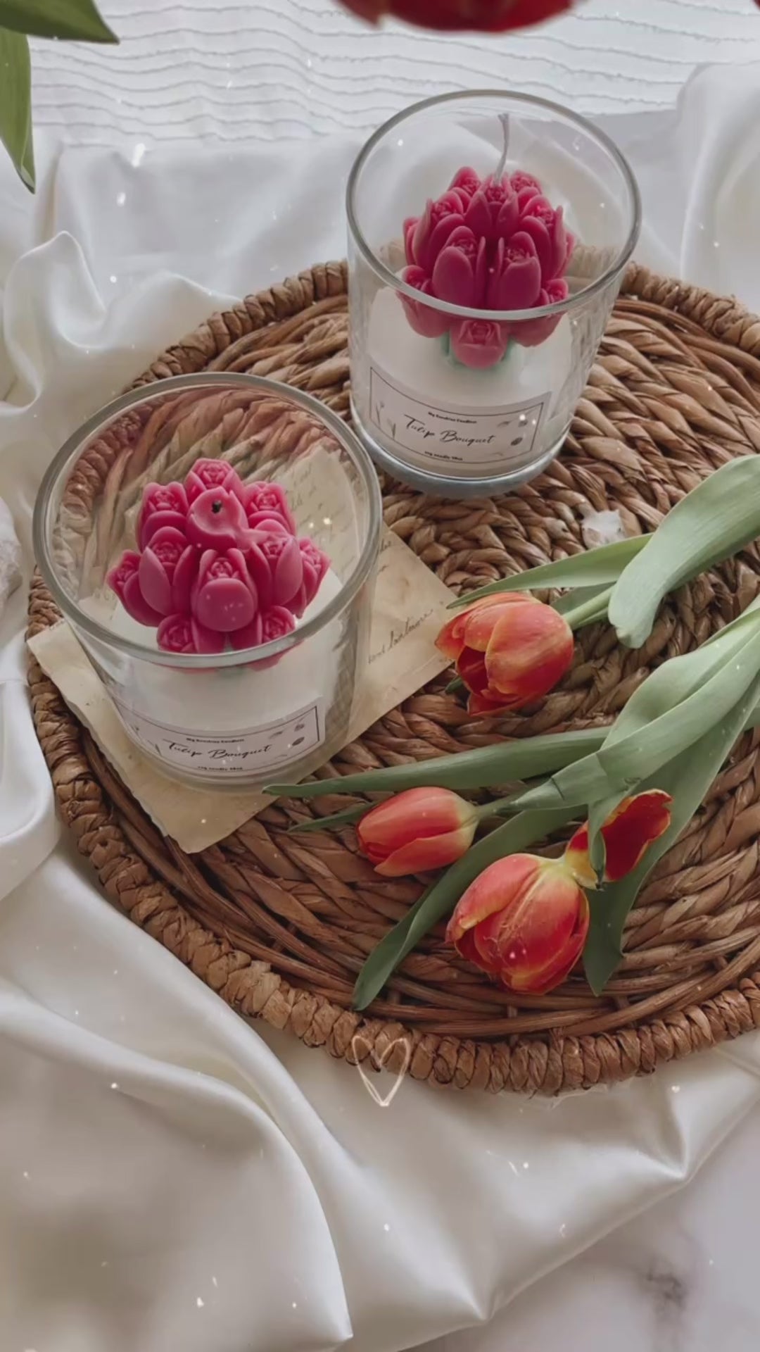 Enjoy the benefits of both a visually stunning piece and a sensory experience with our Handmade Tulip Bouquet Scented Candle.